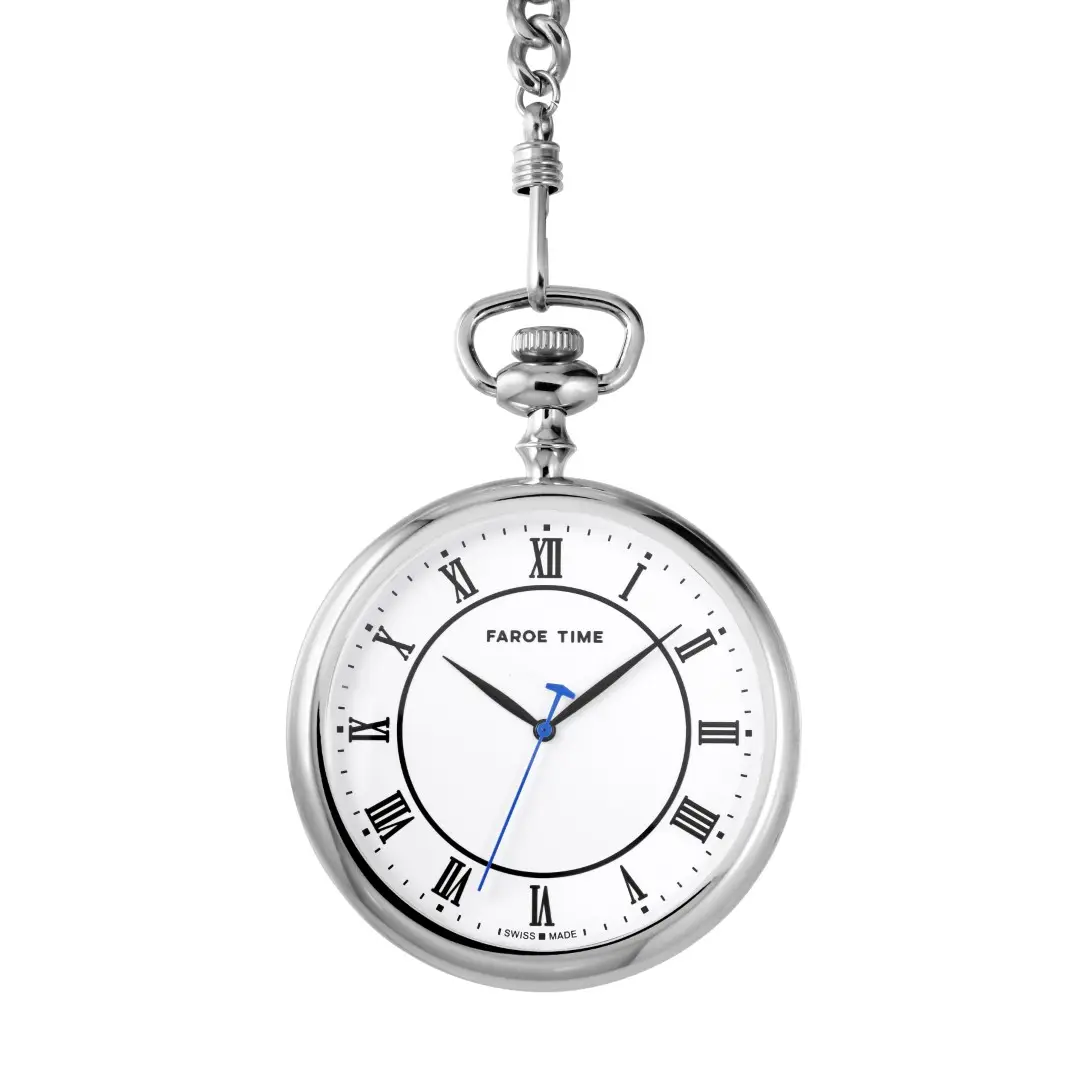 This Faroese Pocket Watch from Faroe Time is designed in Tórshavn. Its slightly curved back case and glass makes it fit comfortably in the hand.